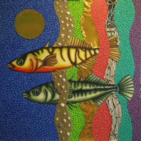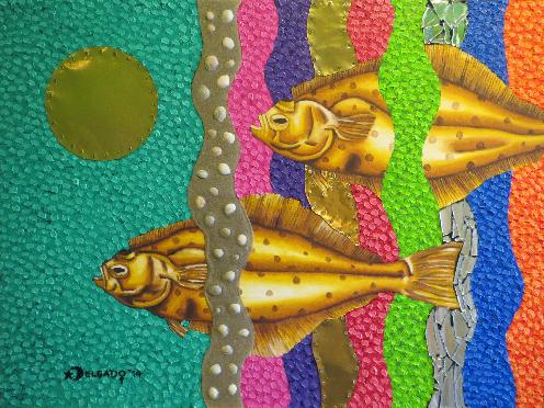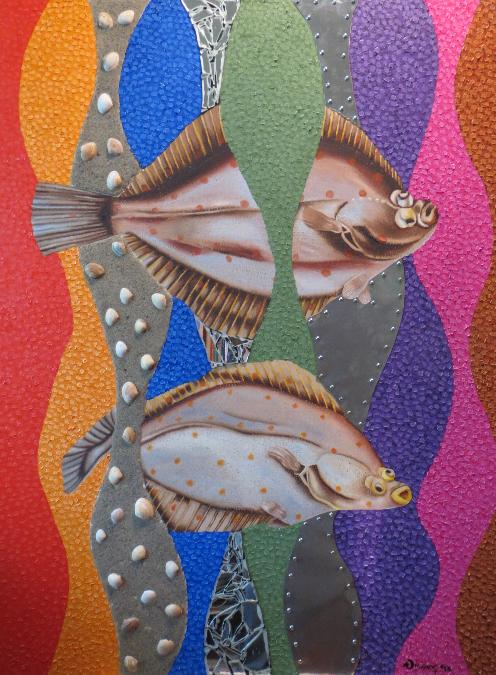 (2013, mixed media on plywood, 80x80cm)Pleuronectes platessa (Scholle)